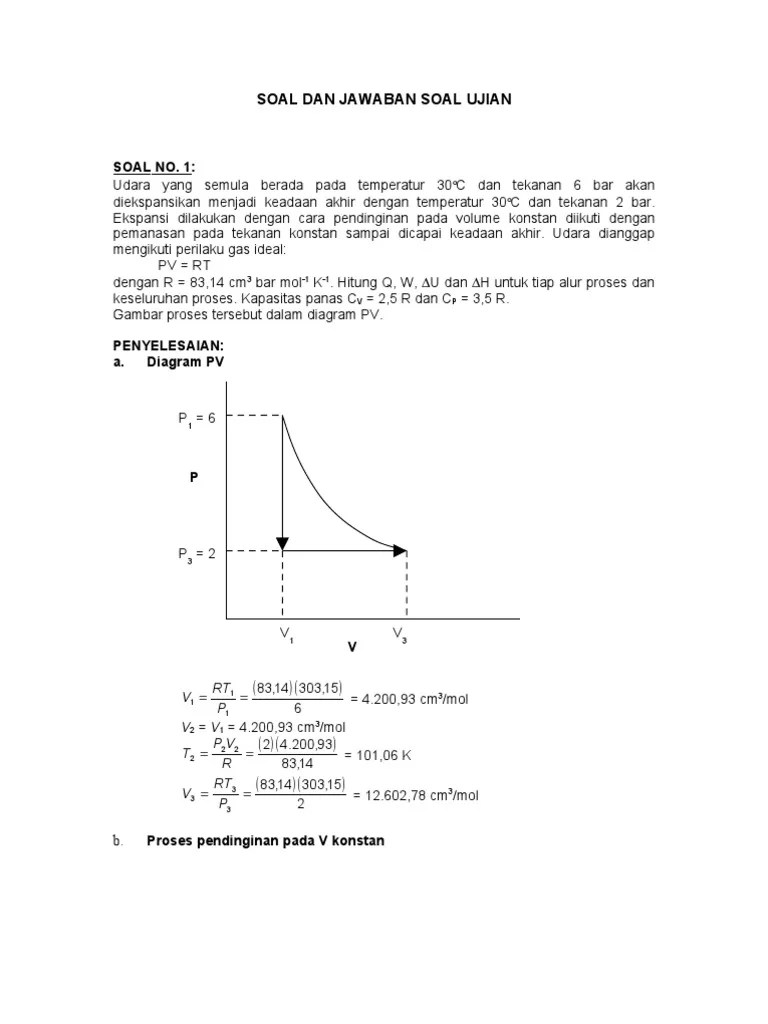 Entropi adalah suatu ukuran derajat ketidakteraturan suatu sistem termodinamika. soal responsi kimia dasar termodinamika sejumlah nitrogen digunakan untuk sintesis amonia dipanaskan secara perlahan dengan menjaga agar besarnya tekanan luar mendekati tekanan dalam yaitu 50,0 atm, sampai volumenya naik dari 542 l menjadi 974 l. 1 suatu gas memiliki volume awal 2,0 m 3 dipanaskan dengan kondisi isobaris hingga volume akhirnya menjadi 4,5 m 3. Contoh soal dan pembahasan unjuk kerja ketel uap 1. Un fisika 2010 p04 no.
